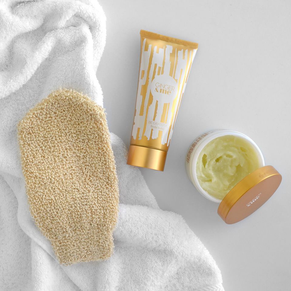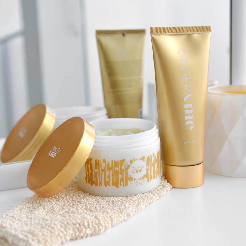 Ginger & Me is a decadent and results driven body line based on Australian natives of Kakadu Plum, Banksia Oil and Jojoba Oil, precious oils from Brazil and the Amazon Murumuru Butter, Capuacu Butter, Tamonol Oil, Inchi Inchi and enough cosmeceutical strength actives; Seabuckthorn Oil, Hydroviton Plus, Sodium Hyaluronate, Maxilip, Whiten™ and more to ensure the products make a visible and tactile skin difference.